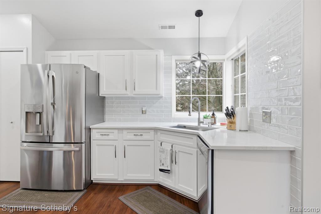 OPEN HOUSE CANCELED. Welcome to THE HEATHERS CLUB EAGLE POINTE CONDOS! Updated kitchen cabinets, GE Appliances in Fab OPEN Kitchen with High Ceilings and lots of Natural light and offers a large pantry and a lot of updated counter space as well....-Updated carpeting and flooring, light fixtures and window treatments and newer garage door and opener Too! Enjoys deck time with great open views of GOLF COURSE. Impressive 2 story foyer and entrance to finished garage, The SPACIOUS Laundry Room and storage room also has furnace and water tank for easy accessibility. The main SUITE IS LARGE WITH FAB VIEWS and large windows overlooking Golf Course and THE WALK IN-CLOSET is a TREASURE plus private bath offers separate shower and jet tub in addition ample counter space and mirrors. This is a MOVE IN CONDITION upper unit in Premium location near THE CLUBHOUSE as well. |